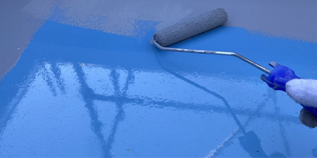 シートの接続部分から水が入ったり、塗料が剥がれたりするのを防ぐため、トップコートを塗って仕上げを行います。