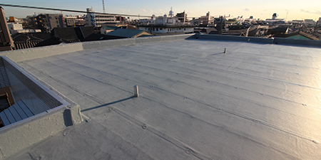 塩化ビニル樹脂製の塩ビシートを使用した防水工事です。
